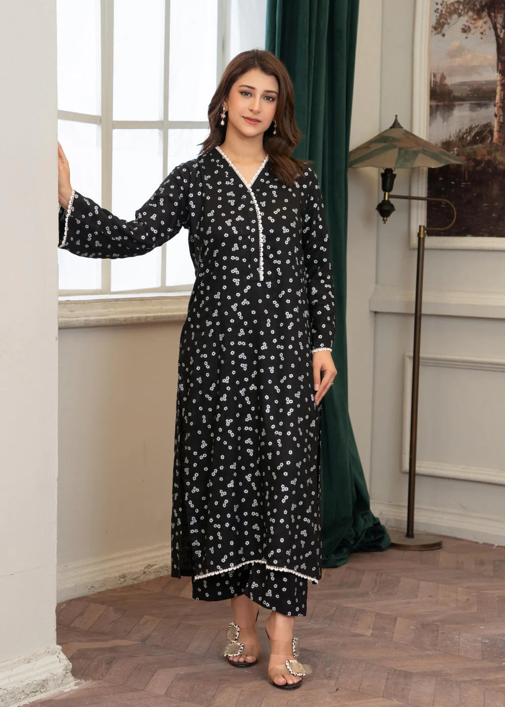 Additional Description: tep into timeless elegance with "Black" by B.K Clothings – a graceful expression of bold sophistication. Crafted from premium lawn cotton, this ensemble combines breathable comfort with a classic deep black hue, perfect for both daywear chic and evening allure. Its refined silhouette and effortless fall make it a staple piece in your summer wardrobe, blending tradition with modern flair.