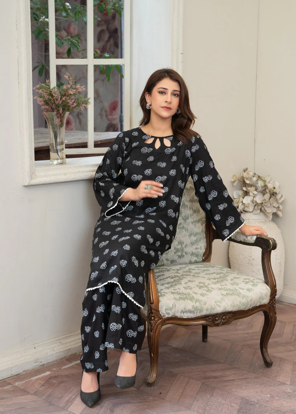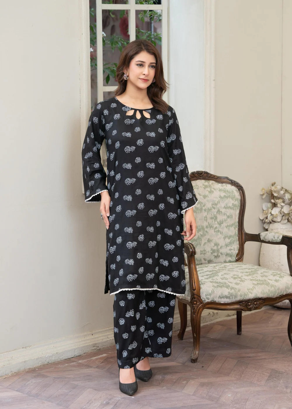 Additional Description: Step into timeless elegance with "Black" by B.K Clothings – a graceful expression of bold sophistication. Crafted from premium lawn cotton, this ensemble combines breathable comfort with a classic deep black hue, perfect for both daywear chic and evening allure. Its refined silhouette and effortless fall make it a staple piece in your summer wardrobe, blending tradition with modern flair.